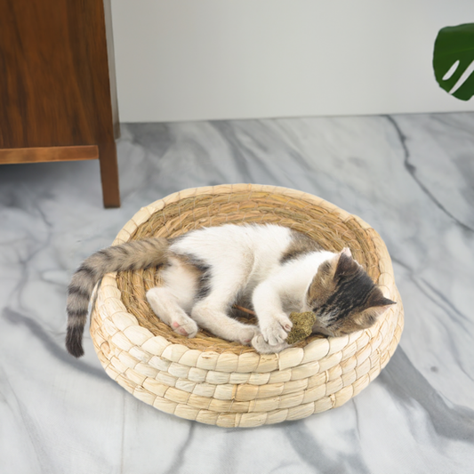 (M) Handmade Eco-Friendly Cats Sleeping Mat Straw and Cornskin Cat Scratchboard